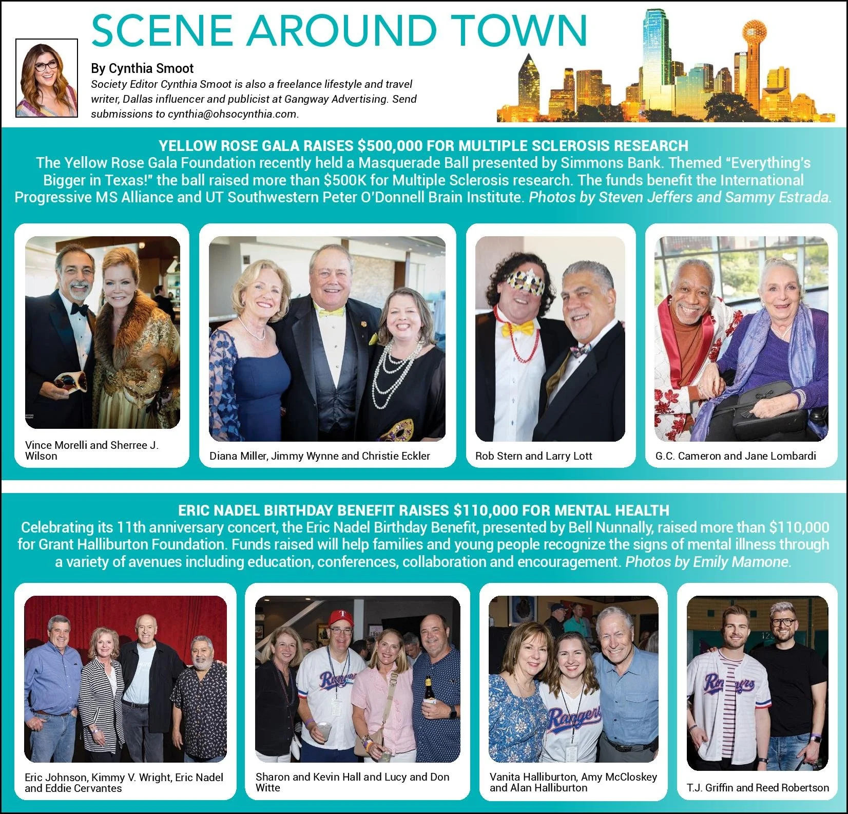 As Society Editor for the Katy Trail Weekly I oversee the publication's Scene Around Town feature, which shines a spotlight on nonprofit and community events each week. In this week’s June 16 issue, I was pleased to spotlight photos featuring highlights from the Yellow Rose Gala Foundation who recently held a Masquerade Ball presented by Simmons Bank. Themed “Everything’s Bigger in Texas!” the ball raised more than $500K for Multiple Sclerosis research. The funds benefit the International Progressive MS Alliance and UT Southwestern Peter O’Donnell Brain Institute. Also featured were scenes from the 11th anniversary Eric Nadel Birthday Benefit, presented by Bell Nunnally, which raised more than $110,000 for Grant Halliburton Foundation. Funds raised will help families and young people recognize the signs of mental illness through a variety of avenues including education, conferences, collaboration and encouragement.