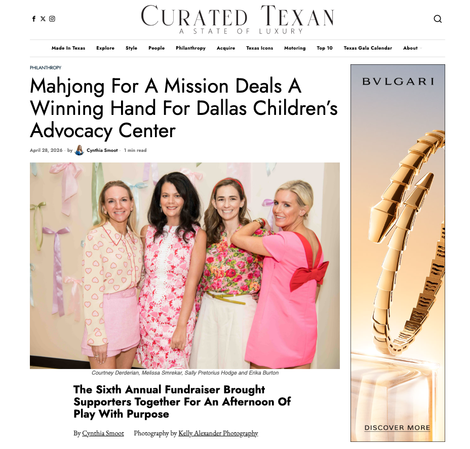Dallas Children’s Advocacy Center (DCAC) welcomed more than 120 guests to Galleria Dallas for its 6th Annual Mahjong for a Mission, chaired by Laura Black. The event brought together community leaders, longtime DCAC supporters, and friends gathering for a meaningful cause. Thanks to the generous community, the event raised more than $80,000 to directly support children served by DCAC.